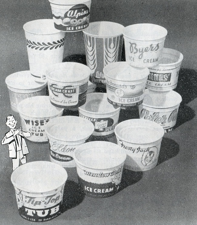 Take-home ice cream was packaged at the factory, most commonly in waxed