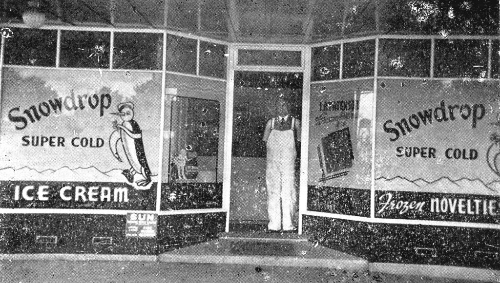 Snowdrop Ice Cream Co., Ashburton, 1955, with proprietor Mr Ian